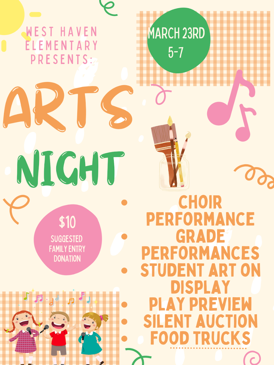 Arts Night is next week, Monday March 23. We hope everyone can make it to see the amazing things our students have created and are ready to perform. We will also have the Book Fair going next week as well.